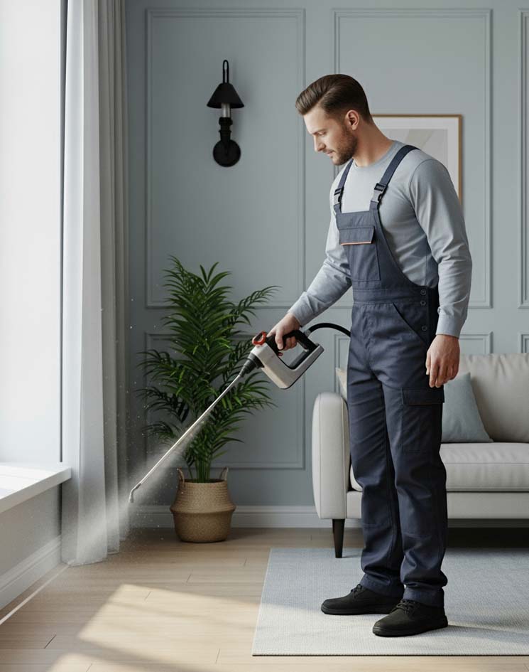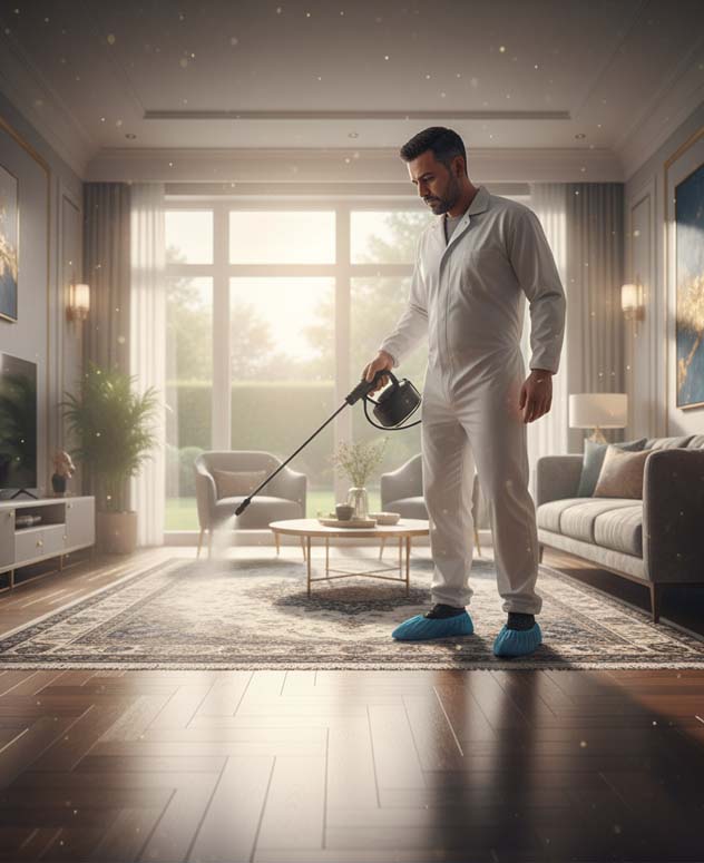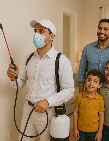 بنستخدم مواد آمنة تمامًا على صحة الإنسان والحيوانات الأليفة، ومصرح بها عالميًا. بنشتغل بحرص شديد عشان نضمن إن بيتك يكون مكان صحي وآمن ليك ولعيلتك